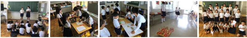 1学期は、臨時休校もあり、1年生とふれあう機会が少なかった6年生は、1年生を招待し一緒に遊びました。6年生1人1人が自分の得意なことを生かして、いろいろなコーナーを設置しました。6年生のいろいろな工夫が見られ、楽しい時間となりました。