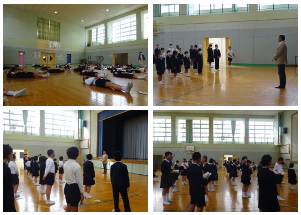 講評では、校長先生から今日のみなさんの行動する姿がよかったこと、もし大津波警報が発令され学校の3階では危険な場合は、【上水道正院配水池】へ避難することを話しました。教頭からは、2つの音を聞かせました。【緊急地震速報】、地震が起こる前に鳴る音なので、この音が聞こえたらすぐ身を守る行動をとること、【大津波警報】は、大津波が来る前に鳴る音なので、もし一人であっても家族と決めた避難場所にすぐ逃げることを伝えました。