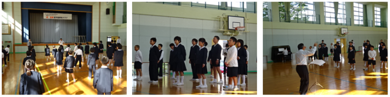 7日(水)の児童集会で、学習発表会に向けた合唱練習が始まりました。