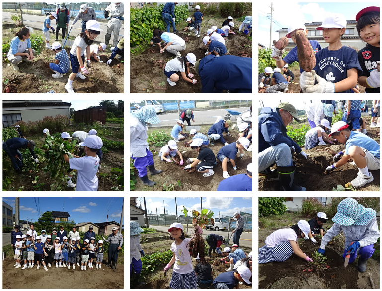 15日の3~4限目、1年生は直公民館さんや地域の皆さんのご協力で、学校農園で育てたさつまいもほり体験を行いました。6/2に一緒に植えたさつまいも。この4ヶ月あまりで大きく生長し、多くの実をつけていました。子ども達は、助けてもらいながら収穫の喜びを感じていました。