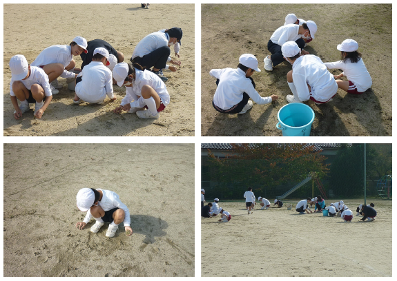 毎週水曜日は外掃除を行っています。今日も班ごとにグラウンドの草むしりをしました。わずか10数分の活動ですが、少しずつグラウンドがきれいになっていきます。