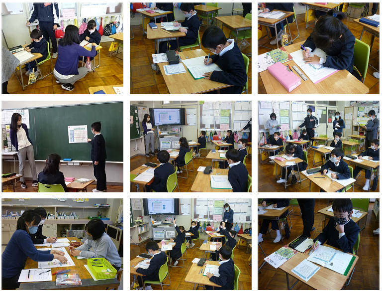 14日の2限目、2年算数科・小町先生の研究授業を行いました。今年度、本校では、学力調査結果の課題から、授業で説明できる・考えを記述できる児童の育成を目指した取組をすすめています。