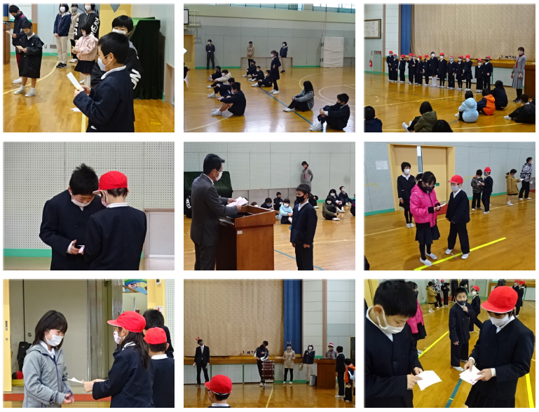 16日の朝は児童集会でした。昨日からは校内でも防寒着を着て良いことになっており、ほとんどの児童は防寒着を着ての集会でした。