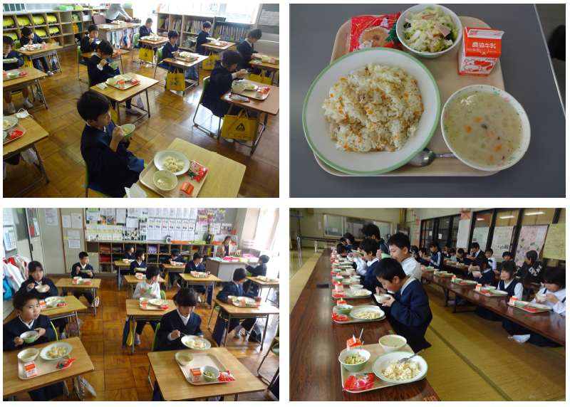 メニューは、チキンピラフ・花野菜サラダ・コーンチャウダーに加えて、クリスマスデザートとしてイチゴ味のカップケーキが出てきました。子ども達はいつも以上に美味しそうに食べる姿が見られました。さて、今晩の皆さんのご家庭でのクリスマスメニューは何かな?