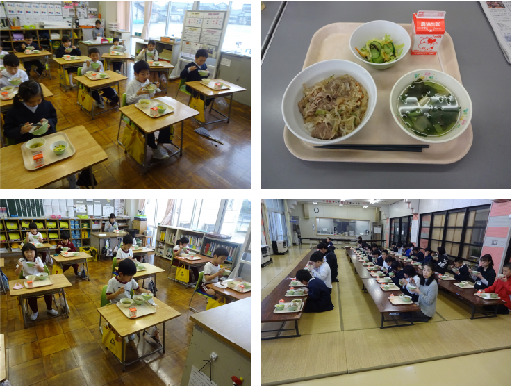 本日は能登牛給食で、メニューは能登牛を使用した牛丼、味噌汁、さざなみ和え、牛乳でした。やはり能登牛はすごくおいしく、児童生徒のみんなも食べる速度が速かったように見えましたが、中には大事そうに最後までゆっくり食べていた子も見付けました。1年に何度も能登牛を食べられて幸せだなと感じました。ごちそうさまでした。