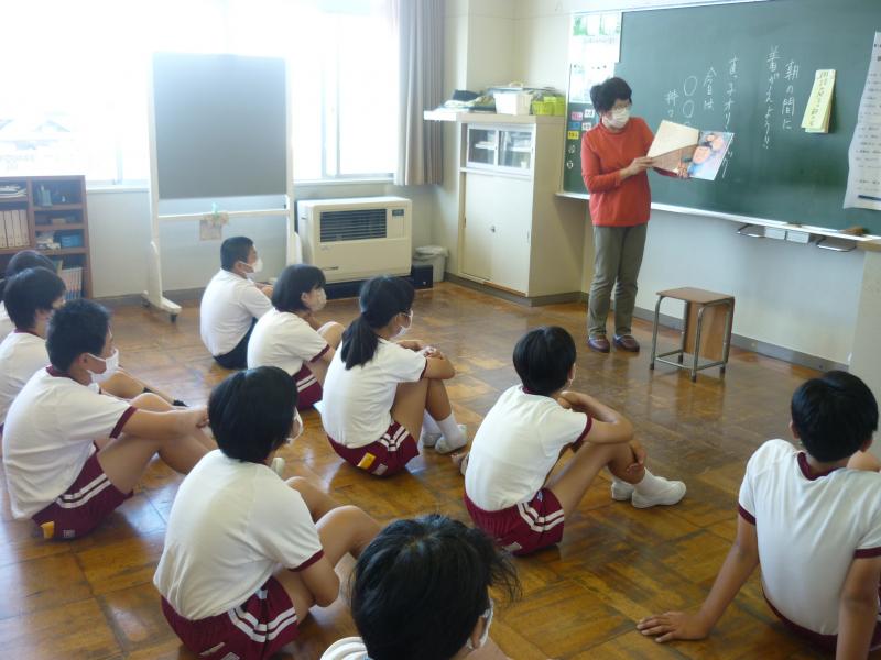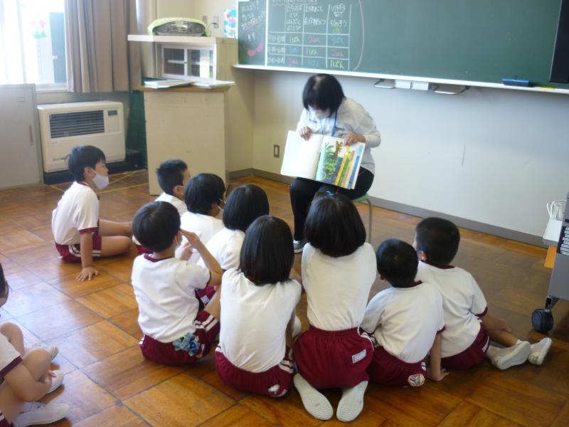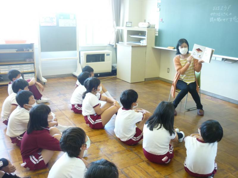 月に2回来て下さる「かたつむりさん」による読み聞かせがありました。子ども達は、お話に興味津々で、食い入るように聞いていました。