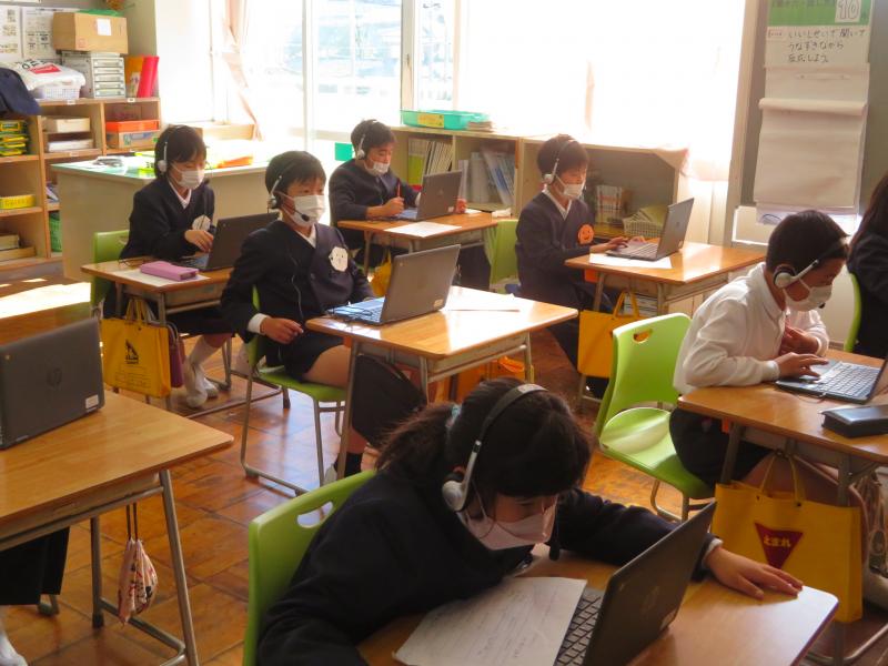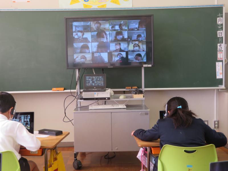 金沢大学付属小学校3・4年複式学級との第2回目のオンライン交流を行いました。2回目は、自分のクロムブックから交流に参加し、お互いの顔を見ながら、互いの学校の様子について質問し合いました。「たくさん人がいるけど、運動会はどうしているのですか?」と聞いたり、「遠足で朝市に行ったと言っていましたが、よく行くのですか?」と聞かれたり、学校や地域の違いを知るよい学習となりました。
