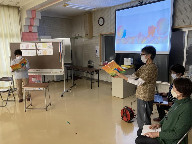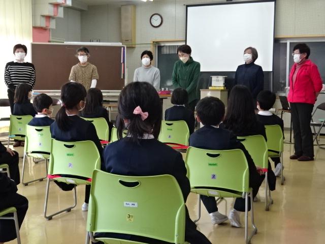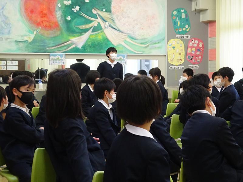 「戦争をやめた人たち」は、高学年の心に響いていました。「青いかいじゅうと赤いかいじゅう」は低学年にも分かりやすく、けんかをしても仲直りしようや相手のいいところを言ってあげたくなったりしたよという感想をもっていました。相手のことや友だちのことを考えるよい機会となりました。どんぐりの会の皆様、ありがとうございました。