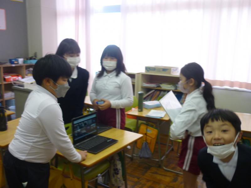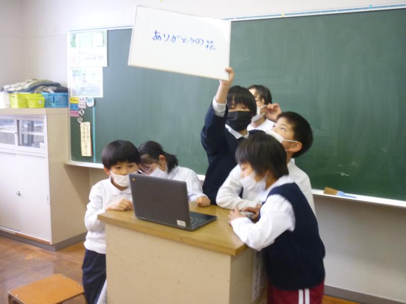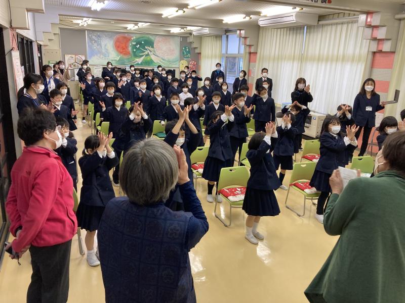 5限目に人権集会を行いました。今年度は、どんぐりの会の皆様にお越しいただき、手遊び歌や読み聞かせをしていただきました。また、11月の今月の歌の「ありがとうの花」を全校で歌いました。