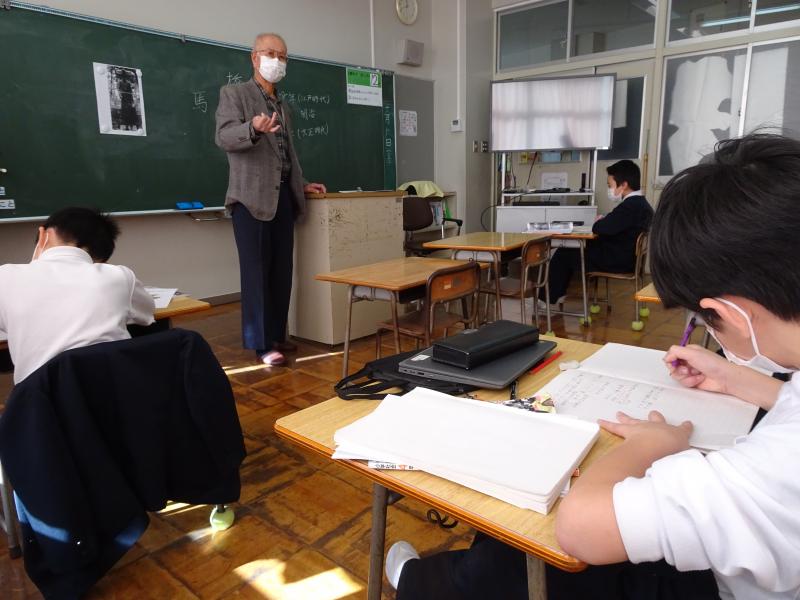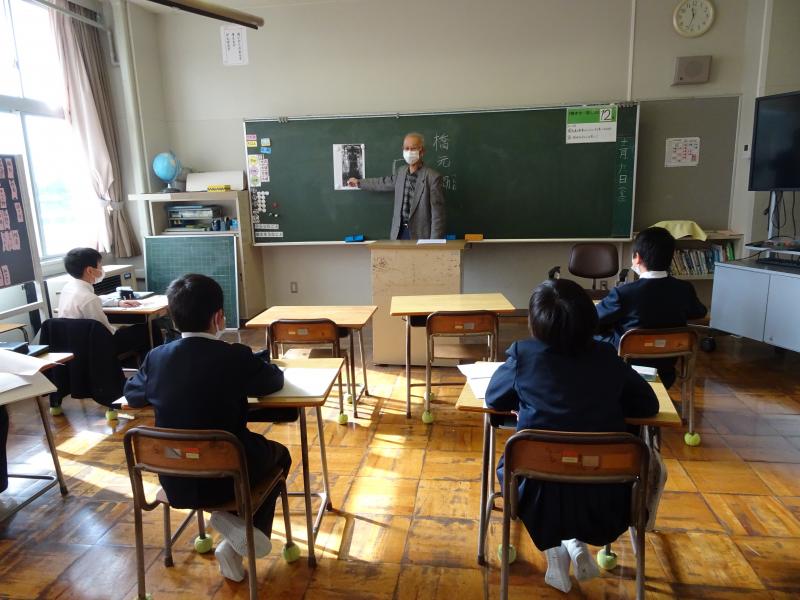 4年生の社会科「地域の発展に尽くした人々」の野々江町の偉人の学習をしました。まちの先生として西中町の小野先生に教えていただきました。教えていただいたのは、「橋元 勗さん」です。農業や製塩業を盛んにするため働く良い馬を揃えるために力を注ぎ、地域住民に信頼され、多くの役職につき活躍された方です。4年生に分かりやすく説明して下さり、他にもいるのかなと郷土の発展に尽くした人について関心が高まりました。