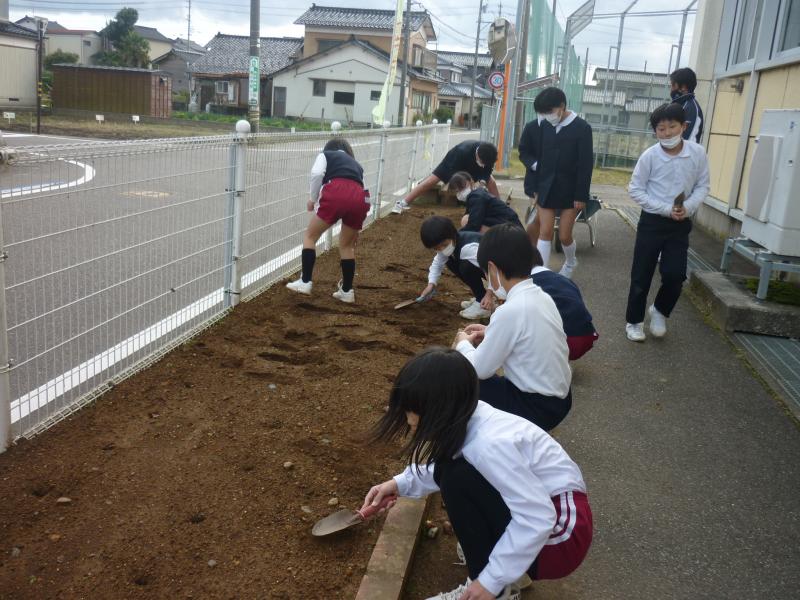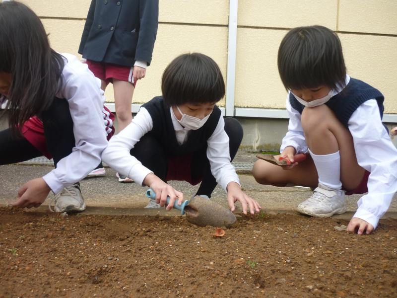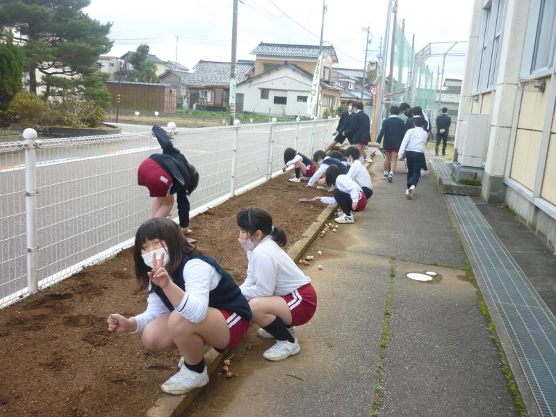 13日 お昼休みにボランティアでチューリップの球根植えをしました。久しぶりの晴れの日でいっぱい遊びたい気持ちがある中、多くの子ども達がボランティアにきてくれました。来年の春が楽しみです。