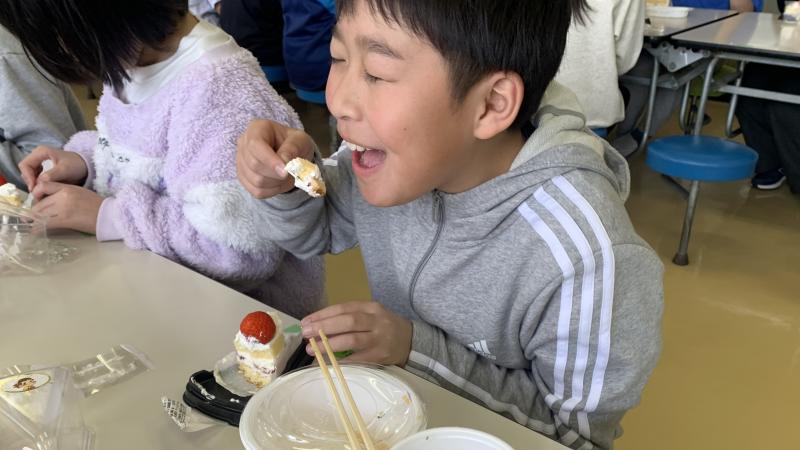 本日、いちごショートケーキの差し入れをいただきました。子供達は大変な喜びようで大盛り上がりでした。美味しいケーキに美味しい顔。とってもハッピーな日となりました。