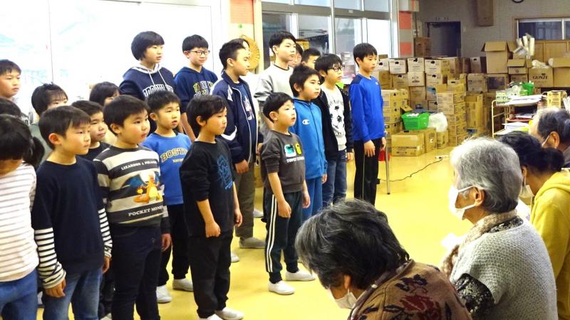 避難所の方に、なかよしルームにて、これまで練習してきた合唱曲「絆」を聴いていただきました。子供達の精一杯の歌声に皆さん、大変喜んでくださり、感謝、激励の言葉もいただきました。寒い日ではありましたが、あたたかな気持ちに包まれた時間となりました。