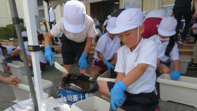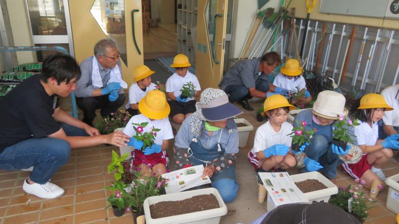 本日1~4年生は、プールに入りました!大変気持ち良かったようです!そして午後からは全校で、寄せ植え体験をしました。寄せ植えとは、一つの鉢に複数の植物を植えることです。カインズ様にお世話いただき、市教委様、そして仮設住宅入居者の皆様方にご協力いただきました。子供達ははじめての寄せ植え体験を満喫したようです。素敵なプランター鉢が沢山出来ました!