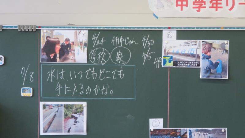 今、4年生は、社会科で「くらしを支える水」について学習しています。本日の授業での課題は、「水は、いつでも、どこでも手にはいるのかな」でした。このことについて、子供達は、身をもって経験してきています。水を供給するために、「沢山の人が努力してくれている」ということをしっかり理解していました。これからもずっと子供達の中に刻み込まれていくことと思います。