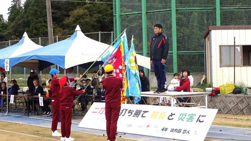 前日の雨の影響が大変心配されましたが、本日、無事、グラウンドで運動会を開催することが出来ました。保護者の皆様方、地域の皆様方のおかげで、笑顔いっぱいの素晴らしい運動会になりました(PTA会長様、三役様、役員様をはじめ、保護者の皆様方におかれましては、保護者参加種目の計画立案、テント等の準備、当日の運営、競技への参加、後片付けに至るまで、大変なご協力をいただきました。心より感謝申し上げます)。多くの皆様方に見守られ、声援を受け、さぞ、子供達も嬉しかったことでしょう。今回の運動会で、地域に大きな元気を発信できたと思います。これからも直っ子の頑張りに応援の程、宜しくお願いいたします。