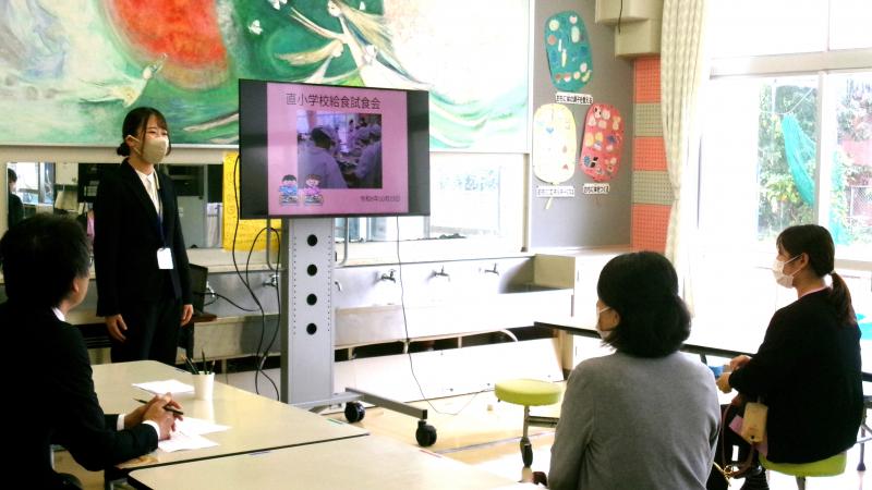 本日、PTA体験委員会様のお世話による、給食試食会が行われました。1年生の保護者様が対象です。配膳の様子から、後片付けまでも見ていただき、試食会後は、栄養教諭による食育講座も開催されました。おうちの方と一緒に食べる給食は、きっとまた格別な味だったことでしょう。