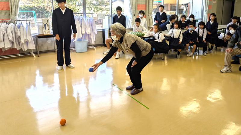 6年生が企画し、地域の方をお招きし、「昔遊び」で交流しました。けん玉やお手玉、コマ回し等、子供達にあたたかく寄り添って、かつての腕前を披露し、コツ、面白さ、楽しさを伝えて下さいました。昔の遊びだけでなく、ボッチャも一緒にやって楽しみました。素敵な時間をありがとうございました。