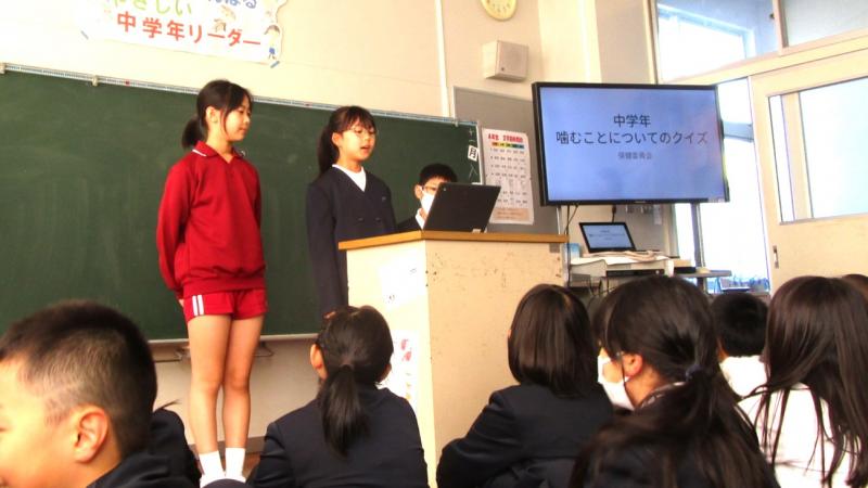 11月8日は、「いい歯の日」です。それに合わせて、低学年、中学年、高学年毎に、保健委員会が、いい歯磨きの仕方等、歯に関する様々な発表をしてくれました。子供達にとても響いたらしく、発表後、「正しい歯磨きをしようと思った」「これから歯を大切にしようと思った」等、前向きな感想が沢山出ました。保健委員会の皆さん、ありがとうございました。
