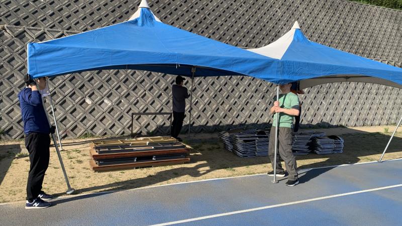 近日中に、1年生が地区の方とサツマイモを植える予定です。今日、協力者の方が、そのための畝をつくって下さいました。有難い限りです。そして、夕刻には、PTAの方々(三役、学級委員)のご協力をいただき、運動会のテントを立てていただきました。お忙しい中、本当に有難うございます。明日は予行です!