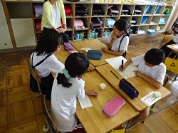 そして、よく噛んで食べる工夫をグループで考え、発表しました。