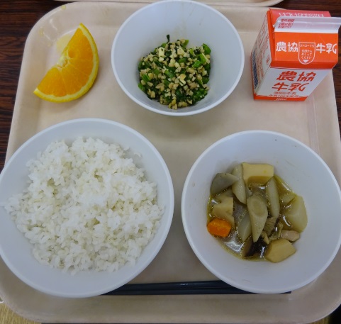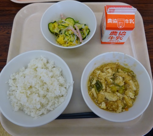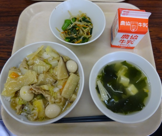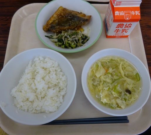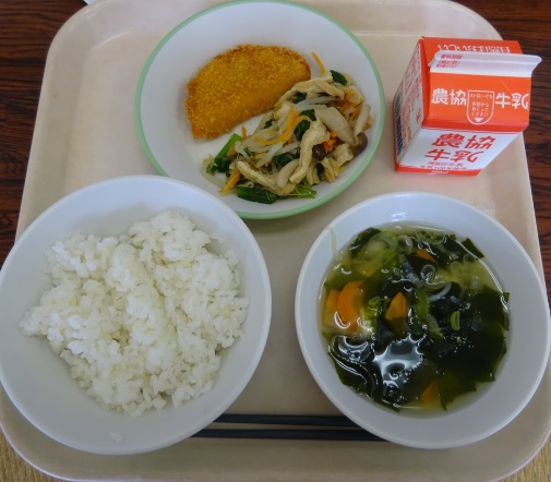 キャベツともやしの和えもの、かきたま汁、牛乳