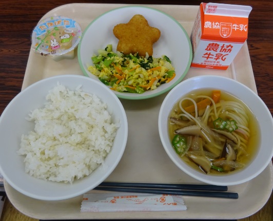 七夕にちなんで今日の給食には、星型のコロッケとゼリー、