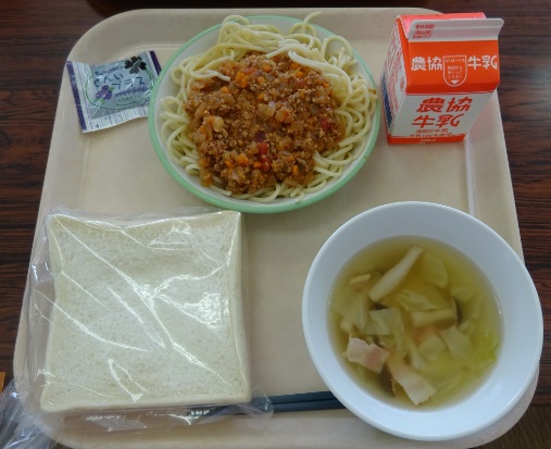 食パン、ブルーベリージャム、スパゲティミートソース、