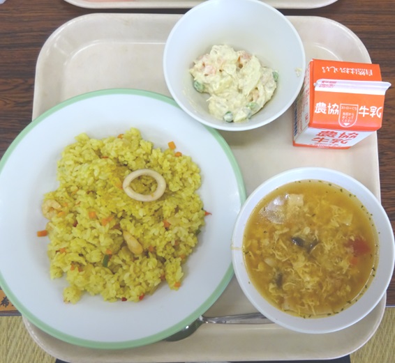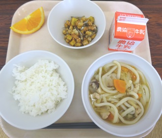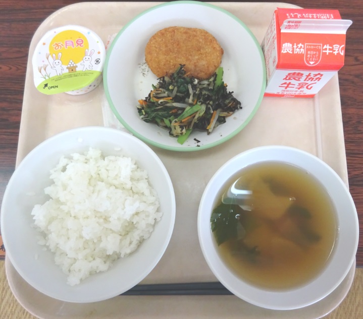 今日は十五夜ということで、給食はお月見こんだてでした。