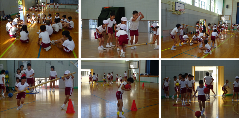 1限目は、縦割り種目練習を行いました。朝の児童集会で6年生が説明してくれた2つの種目「棒をもってぐるぐる」と「ボールを運べ」について、班ごとに選手を決めて練習に取り組みました。班ごとに協力しながら練習を楽しむ姿が見られました。