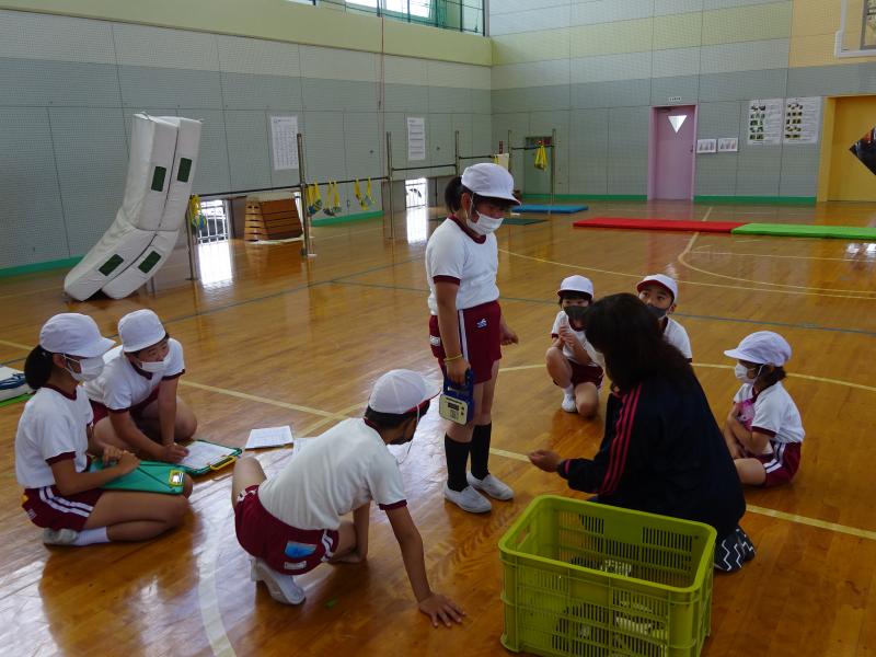 2・3限目に直っ子オリンピックを行いました。1~6年生が縦割り班で、「握力、上体起こし、反復横とび、長座体前屈、50m走、立ち幅とび、ソフトボール投げ」の7種目を行いました。2年生以上は、昨年の記録を超えるようにと頑張っていました。1年生は、初めてですが上級生に教えてもらいながら上手にできました。「頑張れ!」「ドンマイ」「記録、のびたよ」など素敵な声掛けがたくさん見られました。