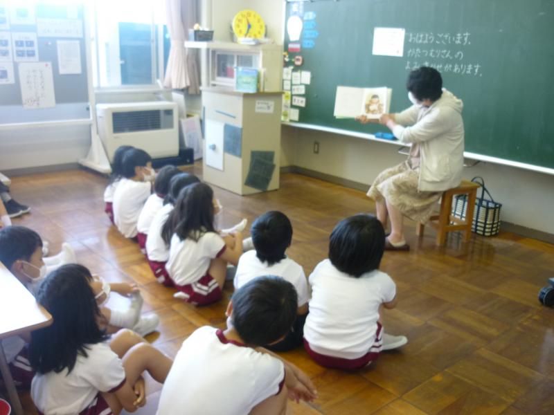 月に2回来て下さる「かたつむりさん」による読み聞かせがありました。子ども達は、お話に興味津々で、食い入るように聞いていました。