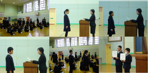 15日の朝、全校朝会を行い、冬休み作品等を中心に次の表彰がありました。
