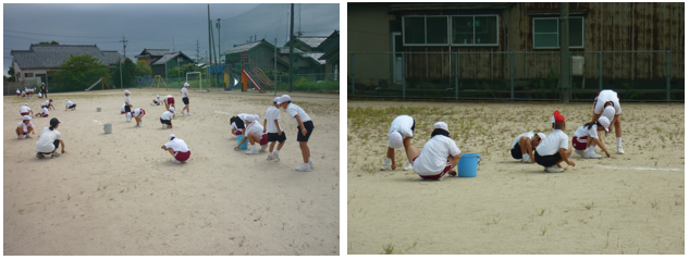 運動会に向けて、今日のお昼の掃除はグラウンドの草むしりを行いました。カラッカラに乾いた土に生えた雑草は抜きにくかったですが、児童は時間いっぱい綺麗にしようと取り組んでいました。