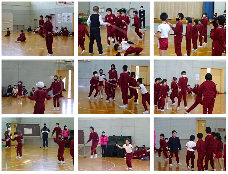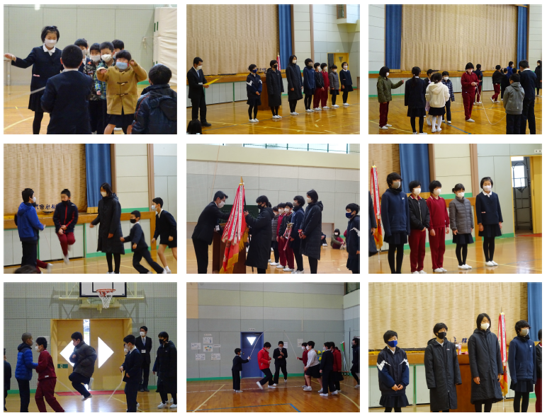 12日の長休み~3限に、全校でのなわとび集会を行いました。今年度は12月から全校で、体育の時間や休み時間を利用してなわとびの練習に取り組んできました。また、3学期に入ってからたてわり班ごとに、8の字とびの練習も行ってきました。朝から児童は体操服に着替え、時間を見つけてなわとびに取り組む姿が見られました。