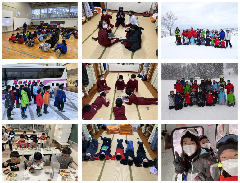 他、たくさんの写真は3階に掲示してあります。18日の授業参観の際、ご覧下さい。保護者の皆さん、ご準備等大変だったと思います。本当にありがとうございました。子ども達にとって思い出に残るスキー体験学習になりました。
