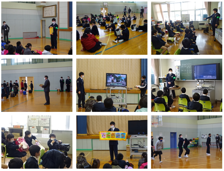 12日の5限目、珠洲警察署から2名の方にご来校いただき、不審者対応についての防犯教室を行いました。例年6月に実施していますが、今年度は1月の実施となりました。