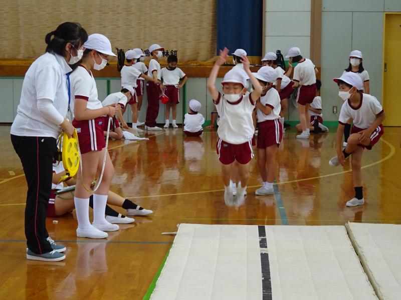 2・3限目に直っ子オリンピックを行いました。1~6年生が縦割り班で、「握力、上体起こし、反復横とび、長座体前屈、50m走、立ち幅とび、ソフトボール投げ」の7種目を行いました。2年生以上は、昨年の記録を超えるようにと頑張っていました。1年生は、初めてですが上級生に教えてもらいながら上手にできました。「頑張れ!」「ドンマイ」「記録、のびたよ」など素敵な声掛けがたくさん見られました。