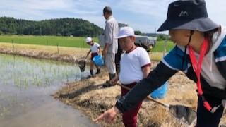 3年生が生き物観察会へ行ってきました。場所は学校近くの田んぼ。普通に田植えをした田んぼと、直播をした田んぼの両方で生き物をさがしました。網を使って、苗を傷めないように優しく生き物をさがしました。子供達は生き物を見つける度に歓声を上げしっかり生き物にふれていました。自らの手でさがすことで感じることは多々あります。素敵な時間となりました。