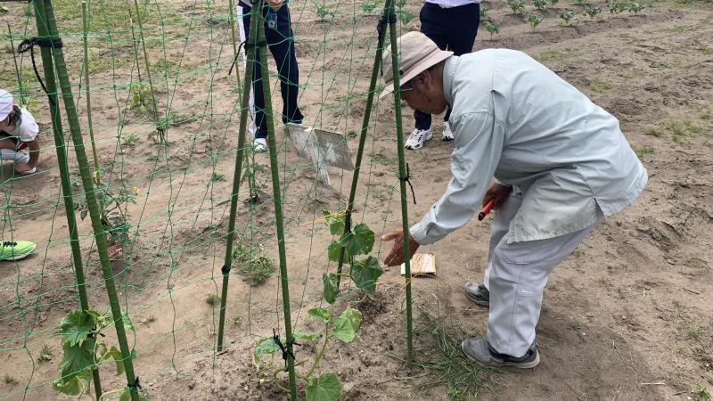 2年生が生活科で野菜を育てています。一口に野菜を育てると言っても、肥料のやり方等、「コツ」がいっぱいあります。そういったことを教えてくれる地域の先生に来ていただきました。とても丁寧に子供達に教えてくださいました。お陰様で子供達は大満足。これから教えていただいたことを大切にして、野菜をしっかり育てていってほしいと思います。