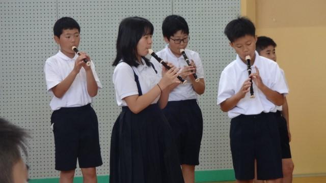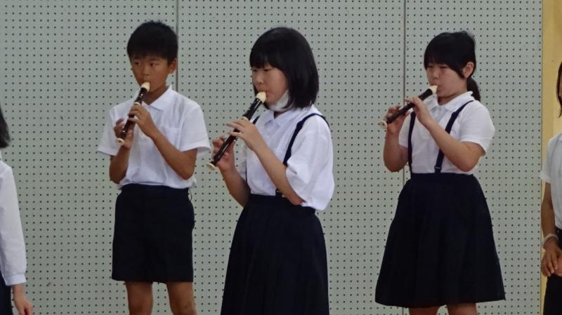 児童集会で、3年生が歌の発表をしました。「にじ」という曲を、振り付け付きで披露してくれました。発表前のオープニングで4年生が振り付きで歌ってくれたり、5年生がリコーダーで伴奏を応援してくれたりと、他学年の協力もあり、歌も振り付けも、とても素敵でした。発表の後、全校で振り付きで歌いました。仮設住宅の方々も観にきて下さり、とても楽しい時間を過ごすことが出来ました。