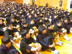 明日は、いしかわっ子駅伝が西部緑地公園陸上競技場で開催されます。本日の学校集会において壮行会を行いました。選手の力強い決意に大きな拍手が送られました。