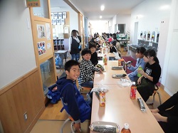給食センターは朝から大忙しでした。紋平柿の皮むきとカット、手作りグラタンのカップ詰めなど、スタッフ総動員で作業をしました。学校では、どのクラスもおいしそうに給食を味わい、「ふるさと給食」についての放送に耳を傾けていました。