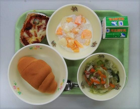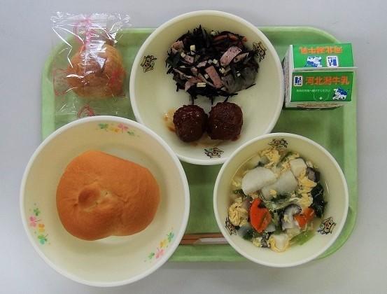 あんクルクルパン とうふハンバーグ まいたけパスタ スターチャウダー 牛乳