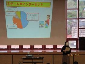 その後、保健委員会が、「おなやみ相談ポスト」に寄せられた内容について、再現ビデオや解決方法を発表しました。相談内容は、「自分にはいいところがなく、どうしたらいいか」というものでした。保健委員会では、自分に自信をつけるために、プラス思考でいく『リフレーミング』の紹介をしました。ものごとをよい方に捉えることで、自分に自信が持てるようになるといいですね。