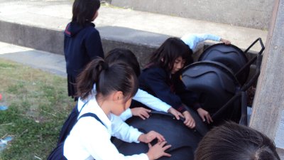 先日、砂場に1~3年生の人だかり・・・何をしているのかと思えば、大きな穴を掘っています。道具がないのでどこからか木の棒を持ち寄り、毎日せっせと穴を大きくしています。どんなことでも遊びになるのですね。