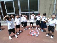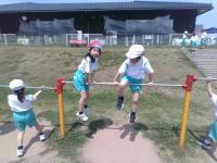 雨が降ったりやんだりの、あいにくのお天気でしたが子どもたちは大はしゃぎ。