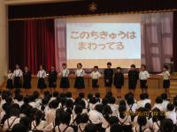 「わくわくタイム」は,環境委員会からのクイズ,放送委員会からの今月の歌がありました。天気が悪く寒い日が続きますが,2月も元気にがんばってほしいと思います。
