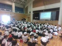 コンサートでは、指揮者の方がマツケンサンバを踊ったり、みんなでジブリメドレーで体操をしたり、ジャンボリーミッキーを踊ったりと、子どもたちを楽しませる工夫が盛りだくさんでした。運動会などで踊った曲が流れると、嬉しそうに席でちょっぴり踊っている子もいました。アンコールでは、勇気100%を演奏してくださり、子どもたちは手拍子をしたり歌を口ずさんだりして大満足の時間を過ごすことができました。また、コンサートの中で、「いかのおすし」についても教えていただき、児童の防犯意識も高まったと思います。