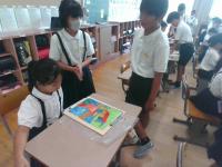 10月3日に、やまんばさんのお話会がありました。1年生では,絵本「しげちゃん」の読み聞かせと,ラトビアの昔話「よくばりワシカ」のお話をしていただきました。最後は、それぞれに願い事を心にうかべながら、10月が誕生月の児童がろうそくの火を消しました。やまんばさん、楽しい時間をありがとうございました。